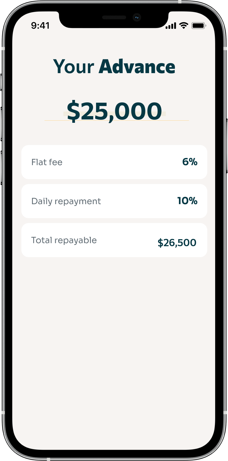 Once you've repaid 30% of your advance, you can access additional capital as your business scales
