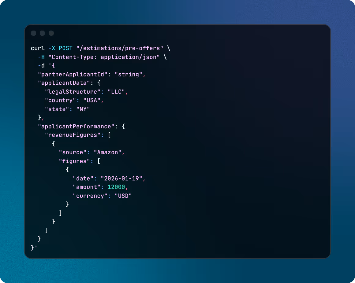 Our APl is built for modern stacks. Webhooks, clear error handling, and a sandbox environment that mirrors production.